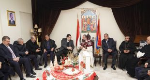 دمشق-سانا بتكليف من السيد الرئيس بشار الأسد قدم وزير الإعلام الدكتور بطرس الحلاق التهاني للطائفة الأرمنية الأرثوذكسية التي تسير وفق التقويم الشرقي بمناسبة عيد الميلاد المجيد.