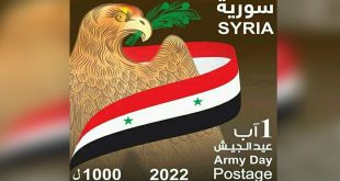 دمشق-سانا أصدرت المؤسسة السورية للبريد طابعاً تذكارياً بمناسبة عيد الجيش العربي السوري