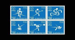 دمشق-سانا أصدرت المؤسسة السورية للبريد مجموعة طوابع بريدية تذكارية وبطاقة بمناسبة دورة ألعاب البحر الأبيض المتوسط