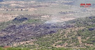 حماة-سانا أخمد عناصر مركز حماية الغابات في منطقة مصياف بريف حماة ظهر اليوم حريقاً اندلع في حقل زراعي في قرية طير جملة بريف المنطقة.