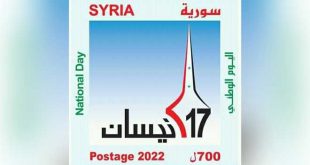 دمشق-سانا أصدرت المؤسسة السورية للبريد طابعاً بريدياً تذكارياً بمناسبة عيد الجلاء