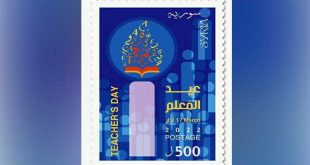 دمشق-سانا أصدرت المؤسسة السورية للبريد طابعاً بريدياً تذكارياً بمناسبة عيد المعلم.