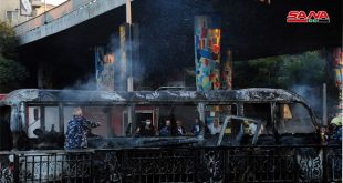 دمشق-سانا أدان مجلس الوزراء التفجير الإرهابي الذي استهدف صباح اليوم حافلة مبيت عسكري عند جسر السيد الرئيس بدمشق وأدى إلى ارتقاء أربعة عشر شهيدا ووقوع عدد من الجرحى. وأكد المجلس في جلسته الأسبوعية أن هذه الجرائم لن تزيد الشعب السوري …