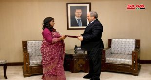 دمشق-سانا تسلم الدكتور فيصل المقداد وزير الخارجية والمغتربين اليوم أوراق اعتماد السفيرة ناهد سبحاني سفيراً غير مقيم لجمهورية بنغلادش الشعبية لدى الجمهورية العربية السورية. ورحب الوزير المقداد بالسفيرة سبحاني متمنياً لها التوفيق والنجاح في أداء مهامها وتعزيز العلاقات بين البلدين …