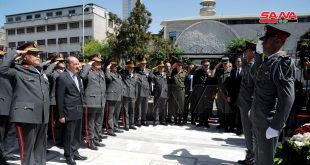 دمشق-سانا احتفاء بذكرى يوم قوى الأمن الداخلي المصادف في التاسع والعشرين من شهر أيار زار اللواء محمد الرحمون وزير الداخلية ضريح شهداء قوى الأمن الداخلي في مقبرة الدحداح بدمشق وقرأ الفاتحة على أرواحهم الطاهرة ووضع وزير الداخلية إكليلاً من الورود …
