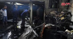 دمشق-سانا أخمد عناصر من إطفاء دمشق اليوم حريقاً اندلع في محل لتنجيد وغسيل السيارات على الطريق الواصل بين منطقة كفرسوسة واللوان بدمشق. وذكر مصدر من إطفاء دمشق لمراسلة سانا أنه تم إخماد الحريق الذي انحصر ضمن المحل وتسبب بأضرار مادية …