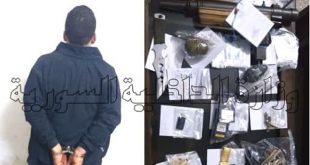 دمشق-سانا ألقى مركز الأمن الجنائي في جبلة القبض على مطلوب خطير بحقه أكثر من عشرين جرماً بقضايا قتل وسلب وخطف في محافظة حماة. وأوضحت وزارة الداخلية في بيان تلقت سانا نسخة منه أنه بعد ورود معلومات مؤكدة عن وجود أحد …