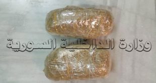 دمشق-سانا أعلنت وزارة الداخلية أن فرع مكافحة المخدرات بدمشق ألقى القبض على شخصين من مروجي المخدرات بحوزتهما ستة كيلوغرامات وستمئة غرام من مادة الحشيش المخدر. وأوضحت وزارة الداخلية في بيان تلقت سانا نسخة منه أنه بناء على المعلومات الواردة إلى …