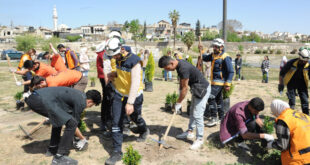 دمشق-سانا أطلق الدفاع المدني السوري بالتعاون مع فريقي عطائي التطوعي والإبداع الهندسي اليوم، حملة تشجير
