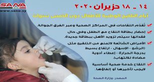 دمشق-سانا تنطلق يوم غد الأحد أيام التلقيح الوطنية التي تنظمها وزارة الصحة وتستهدف الأطفال من عمر يوم حتى خمس سنوات وتتضمن اللقاحات الروتينية المدرجة في برنامج التلقيح الوطني وعددها 11 لقاحاً إضافة إلى متابعة الأطفال المتسربين من اللقاح لاستكمال لقاحاتهم. …