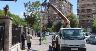 دمشق-سانا أعمال تأهيل وصيانة وتركيب أجهزة إنارة في عدد من الطرق الرئيسة، وإزالة منصف طريق كورنيش الميدان، قامت بها ورشات