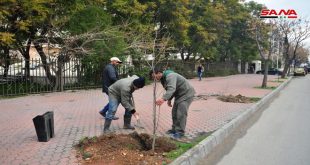 دمشق-سانا بدأت محافظة دمشق حملة تشجير على أرصفة الشوارع في المدينة وأحيائها بهدف زيادة المساحات الخضراء وإضفاء جمالية للمدينة وتحسين الواقع البيئي فيها. نحو ألفي شجرة من أنواع النارنج والزيتون والدردار والخرنوب والقيقب واللوكستروم والازدرخت تعمل مديرية الحدائق في المحافظة …
