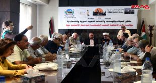 دمشق-سانا أكد المشاركون في ملتقى الهيئات والمؤسسات والاتحادات الشعبية السورية والفلسطينية الذي انعقد اليوم بمناسبة ذكرى الانتفاضة الشعبية الفلسطينية بعنوان “الانتفاضة حياة” على أهمية توحيد الجهود والمواقف مع الشعب الفلسطيني لمواجهة كل المخططات الصهيونية وتحرير الأراضي المحتلة. وأشار المشاركون بالملتقى …