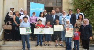 دمشق-سانا كرمت وزارة التربية ومنظمة الصحة العالمية اليوم الأطفال الفائزين بالمسابقة الإقليمية لرسومات الأطفال تحت شعار “الصحة للجميع”. وفازت خمس لوحات لأطفال من محافظات دمشق وحمص ودير الزور تركز موضوعاتها على أهمية الغذاء الصحي ودور اللقاح والتغذية السليمة في النمو …