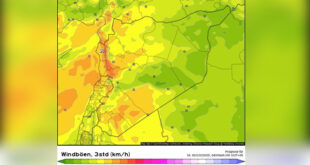 دمشق-سانا تشهد البلاد أحوال جوية غير مستقرة خلال الـ 48 ساعة القادمة، ويطرأ انخفاض على درجات الحرارة، يترافق مع حركة رياح