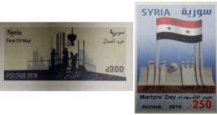 دمشق-سانا أصدرت المؤسسة السورية للبريد طابعين بريديين بمناسبة عيدي الشهداء والعمال الأول من فئة 250 ليرة سورية والآخر من فئة 300 ليرة. وبينت المؤسسة في بيان لها تلقت سانا نسخة منه اليوم أنه يمكن للجمهور والهواة الحصول على الطابعين من …
