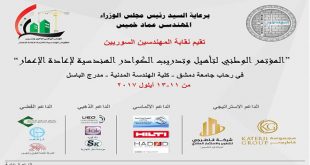 دمشق-سانا برعاية رئيس مجلس الوزراء المهندس عماد خميس تنطلق بعد غد الاثنين فعاليات المؤتمر الوطني لتأهيل وتدريب الكوادر الهندسية لإعادة الإعمار الذي تنظمه نقابة المهندسين على مدرج الباسل بكلية الهندسة المدنية بجامعة دمشق. وأوضح نقيب المهندسين الدكتور غياث قطيني في …
