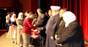 دمشق-سانا كرمت مديرية أوقاف ريف دمشق اليوم الفائزين بمسابقة “أهل اللغة والفصاحة” بفروعها الخمسة وذلك في دار الأسد للثقافة والفنون بدمشق. ولفت وزير الأوقاف الدكتور محمد عبد الستار السيد في كلمة له إلى أهمية المسابقة بما ينعكس على تعزيز “التمسك …