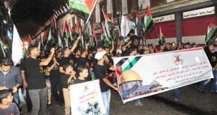دمشق-سانا أكد المشاركون فى مسيرة يوم القدس العالمي بدمشق تضامناً مع الشعب الفلسطيني ضرورة توحيد طاقات أبناء الأمة فى مواجهة الاحتلال الإسرائيلي ومن ورائه الولايات المتحدة الأمريكية، مشيرين إلى أنه لا بديل عن تحرير فلسطين واستعادة كامل المقدسات وعودة اللاجئين إلى …