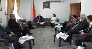 دمشق -سانا بحث أعضاء جمعية الصداقة السورية الأرمينية في مجلس الشعب مع السفير الأرميني بدمشق ارشاك بولاديان العلاقات البرلمانية بين البلدين الصديقين وآخر تطورات الأوضاع على الصعيدين الإقليمي والدولي. وتناول اللقاء الذي عقد في مبنى السفارة بدمشق مواقف أرمينيا ووقوفها …