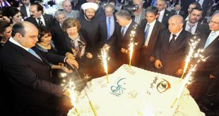 دمشق-سانا احتفلت صحيفة الوطن مساء اليوم بعيدها السنوي العاشر بحفل تخللته فقرات غنائية وشعرية وذلك في فندق داما روز بدمشق. حضر الحفل نائب رئيس الجمهورية الدكتورة نجاح العطار ووزراء السياحة المهندس بشر يازجي والاقتصاد والتجارة الخارجية الدكتور أديب ميالة والإعلام …