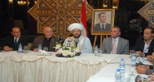 دمشق-سانا أكد سماحة المفتي العام للجمهورية الدكتور أحمد بدر الدين حسون أن أبناء سورية في المغترب كانوا أوفياء دائماً لوطنهم ومدافعين عنه وسباقين دائماً للتخفيف من آثار الهجمة الإرهابية عليه ولم يألوا جهداً إلا وبذلوه لرفع اسم سورية عالياً في …