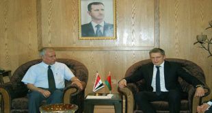 دمشق-سانا بحث وزير الصناعة المهندس أحمد الحمو مع سفير جمهورية بيلاروس بدمشق الكسندر بانوماريف مجالات التعاون الاقتصادي و الصناعي وسبل تنفيذ المشاريع المتفق عليها بما يعود بالفائدة على البلدين. وأكد الحمو الذي يرأس اللجنة العليا المشتركة السورية البيلاروسية ضرورة تفعيل …