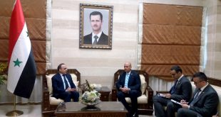 دمشق- سانا بحث رئيس مجلس الوزراء المهندس عماد خميس مع سفير جمهورية فنزويلا البوليفارية بدمشق عماد صعب سبل تطوير علاقات التعاون بين البلدين في مختلف المجالات وخاصة الاقتصادية منها. وعبر المهندس خميس عن تقدير سورية حكومة وشعبا لمواقف جمهورية فنزويلا …