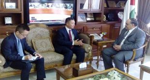 دمشق-سانا بحث وزير الزراعة والإصلاح الزراعي المهندس أحمد القادري اليوم مع سفير جمهورية الصين الشعبية بدمشق وانغ كه جيان آفاق التعاون الزراعي بين البلدين وسبل تطويره. وأكد القادري ضرورة تطوير العلاقات الاقتصادية والتبادل التجاري مع الصين وتفعيل اتفاقيات التعاون المشترك …