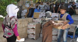 دمشق-سانا بدأت الهيئة الخيرية لإغاثة الشعب الفلسطيني في سورية اليوم توزيع سلات غذائية مقدمة من الجمهورية الإسلامية الإيرانية لأهالي المخيمات الفلسطينية وذلك في حي الزاهرة بدمشق. وفي تصريح لـ سانا أوضح مدير الهيئة مازن أبو عطوان أن الهيئة ستوزع نحو 2300 …