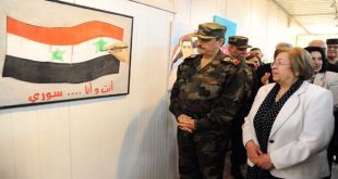 دمشق-سانا افتتح نائب القائد العام للجيش والقوات المسلحة وزير الدفاع العماد فهد جاسم الفريج اليوم معرض رسم تشكيلي لأبناء وبنات الشهداء في المركز التربوي للفنون التشكيلية بدمشق وذلك بمناسبة الذكرى المئوية لعيد الشهداء. وأكد العماد الفريج في تصريح صحفي بعد …