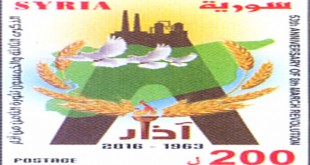 دمشق – سانا أصدرت المؤسسة العامة للبريد طابعا بريديا تذكاريا بمناسبة الذكرى الـ53 لثورة الثامن من آذار قيمته 200 ليرة سورية. ووضع الطابع في التداول بدءا من اليوم حيث يمكن للجمهور والهواة الحصول عليه من جميع المكاتب البريدية المنتشرة في …