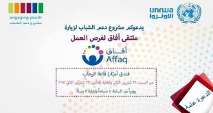 دمشق-سانا ينظم “مشروع دعم الشباب” التابع لوكالة غوث وتشغيل اللاجئين الفلسطينيين “الأونروا” بالتعاون مع شركة مسارات للمعارض والمؤتمرات ملتقى آفاق لفرص العمل وذلك في قاعة الرحاب بفندق أمية في دمشق خلال الفترة من الـ21 ولغاية الـ23 من الشهر الجاري. وذكر …