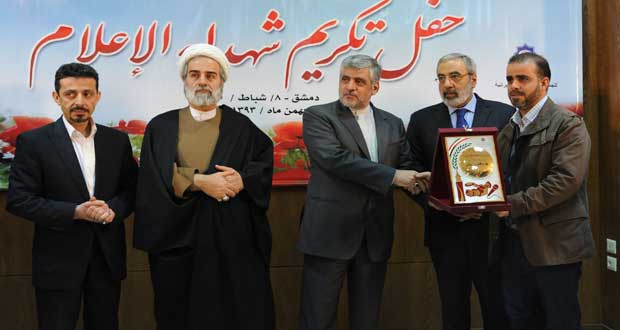 دمشق-سانا تقديرا لتضحيات من حملوا أقلامهم ووقفوا في خندق واحد مع رجال الجيش العربي السوري كرمت وزارة الإعلام بالتعاون مع المستشارية الثقافية لسفارة الجمهورية الإسلامية الإيرانية في دمشق اليوم عائلات 46 شهيدا اعلاميا على مدرج دار البعث. وأكد وزير الإعلام …