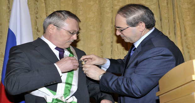 دمشق-سانا أقامت وزارة الخارجية والمغتربين اليوم حفل وداع في فندق الفور سيزون بدمشق لسفير روسيا الاتحادية بدمشق عظمة الله كولمحمدوف بمناسبة انتهاء مهامه لدى الجمهورية العربية السورية. وقلد نائب وزير الخارجية والمغتربين الدكتور فيصل المقداد السفير الروسي وسام الاستحقاق السوري …
