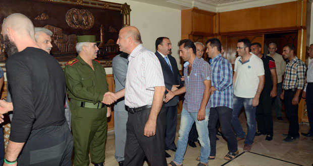 حلب-حمص-سانا سويت اليوم أوضاع 120 مطلوبا في محافظة حلب ممن سلموا أنفسهم وأسلحتهم وتعهدوا بعدم القيام بأي عمل يمس أمن الوطن وذلك على مدرج فرع حلب لحزب البعث العربي الاشتراكي. ودعا محافظ حلب محمد وحيد عقاد جميع السوريين إلى وضع …