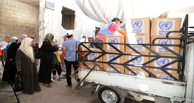 دمشق-سانا بدعم من الحكومة السورية وزعت الهيئة العامة للاجئين الفلسطينيين العرب ووكالة غوث وتشغيل اللاجئين الفلسطينيين الأونروا ومنظمة التحرير الفلسطينية اليوم وأمس 517 سلة غذائية على أهالي مخيم اليرموك بدمشق المحاصرين من قبل التنظيمات الإرهابية المسلحة. وأوضح المدير العام للهيئة …