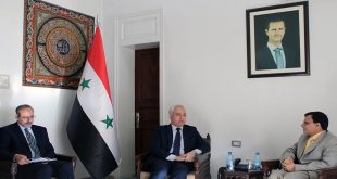 دمشق-سانا بحث وزير الاتصالات والتقانة المهندس إياد الخطيب مع السفير الهندي في سورية ارشاد أحمد سبل تعزيز التعاون