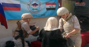 دير الزور-سانا وزع مركز التنسيق الروسي في حطلة بدير الزور مساعدات غذائية وطبية على عدد من أهالي حي