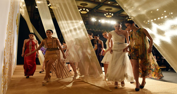 عرض أزياء للمصمم Zhu Wen خلال عروض لمجموعة Yante Tree Zhu Wen العالمية في أسبوع الموضة ببكين الذي ينتتهي الجمعة31 تشرين الأول.