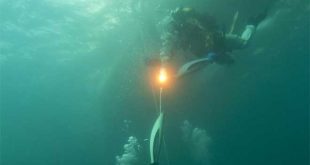 بكين-سانا نقل روبوت صيني، لأول مرة في تاريخ الألعاب الأولمبية، الشعلة الأولمبية تحت الماء دون أن تنطفئ