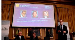 استوكهولم-سانا أعلنت الأكاديمية الملكية السويدية للعلوم اليوم فوز الأمريكي أبهجيت بانيرجي المولود في الهند والأمريكي مايكل كريمر والفرنسية الأمريكية إستر دوفلو اليوم بجائزة نوبل للاقتصاد عن أعمالهم حول الفقر. ونقلت “ا ف ب” عن هيئة التحكيم “إن الخبراء الثلاثة كوفئوا …