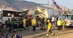 لوس انجلوس-سانا قتل 13 شخصا وأصيب 31 آخرون بجروح اليوم جراء تصادم حافلة ركاب بشاحنة في ولاية كاليفورنيا الأمريكية. وذكرت قناة إن بي سي التلفزيونية الأمريكية أن الحادث وقع قرب بلدة بالم سبرينغز مشيرة إلى أن الشرطة تحقق بملابسات الحادث. …