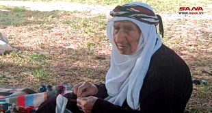 الحسكة-سانا تقدمها في العمر وبلوغها المئة عام لم يمنعها من استمرار إنتاجها وإبداعها في استخدام صوف وشعر الماشية