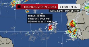 واشنطن-سانا أعلن المركز القومي الامريكي للاعاصير إن العاصفة الاستوائية جريس تشكلت فوق شرق المحيط الاطلسي أمس برياح متواصلة سرعتها القصوى/65/كيلومترا في الساعة وتتجه غربا في مسار قد يأخذها في اتجاه الكاريبي. ونقلت رويترز عن المركز قوله في بيان “من المتوقع …