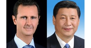 دمشق-سانا بعث السيد الرئيس بشار الأسد اليوم برقية تهنئة إلى رئيس جمهورية الصين الشعبية شي جين بينغ بمناسبة إعادة انتخابه أمينا عاما للجنة المركزية للحزب الشيوعي الصيني لولاية ثانية متمنيا له التوفيق والنجاح وللشعب الصيني الصديق المزيد من التقدم والازدهار. …