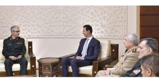دمشق-سانا تسلم السيد الرئيس بشار الأسد اليوم رسالة من المرشد الأعلى للجمهورية الإسلامية الإيرانية آية الله علي خامنئي نقلها إليه اللواء محمد باقري رئيس هيئة الأركان العامة في القوات المسلحة الإيرانية هنأه فيها بالانتصارات التي تتحقق ضد الإرهاب في سورية. …