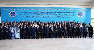 طهران-سانا شارك رئيس مجلس الوزراء المهندس عماد خميس ممثلا للسيد الرئيس بشار الأسد في مراسم أداء اليمين الدستورية للرئيس الإيراني حسن روحاني لولاية ثانية والتي جرت اليوم بحضور وفود تمثل 105 دول ومنظمات وحركات المقاومة في لبنان وفلسطين. ونقل المهندس خميس …