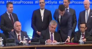 أستانا-سانا وقعت الدول الضامنة لاتفاق وقف الأعمال القتالية في سورية خلال الجلسة العامة لاجتماع أستانا 4 في العاصمة الكازاخية اليوم على المذكرة الروسية الخاصة بمناطق تخفيف التوتر. وأعلن رئيس وفد الجمهورية العربية السورية إلى اجتماع “أستانا 4” الدكتور بشار الجعفري …