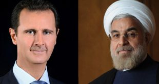 دمشق-سانا تلقى السيد الرئيس بشار الأسد اليوم اتصالا هاتفيا من الرئيس حسن روحاني رئيس الجمهورية الإسلامية الإيرانية. وأعرب الرئيس روحاني خلال الاتصال عن إدانته الشديدة للعدوان الأمريكي السافر على الأراضي السورية والذي يشكل انتهاكا صارخا للسيادة السورية وكل القوانين والمواثيق …